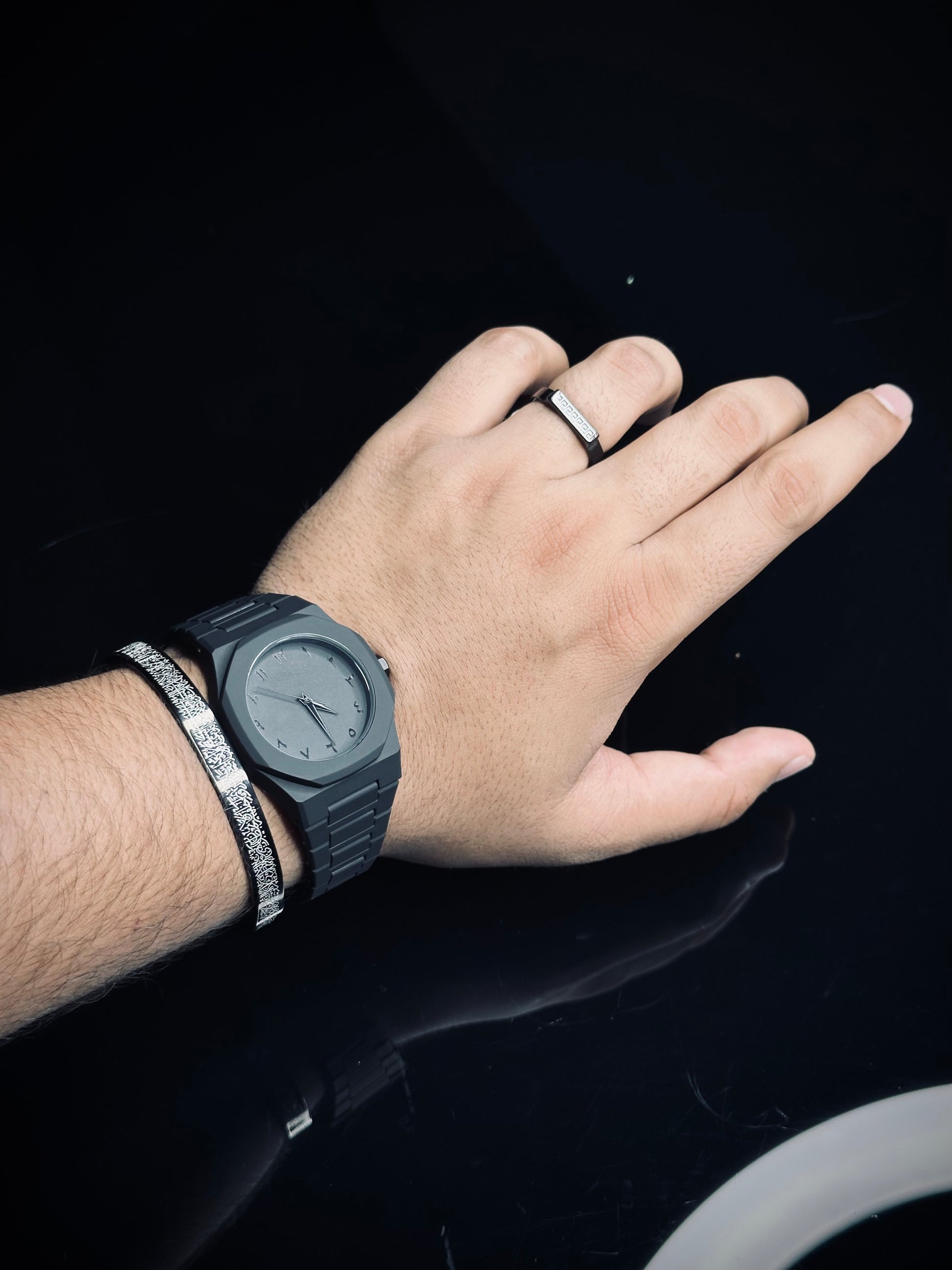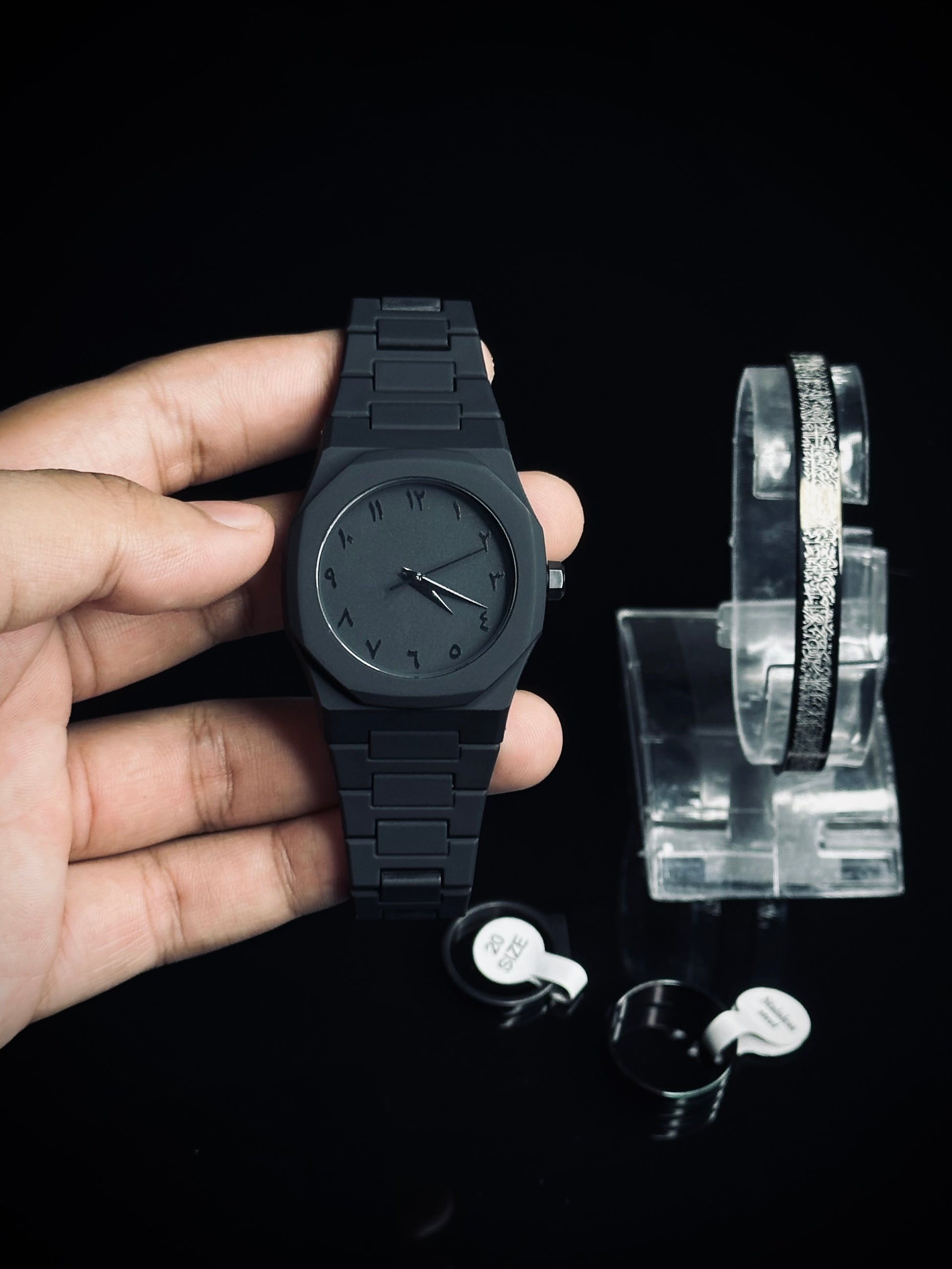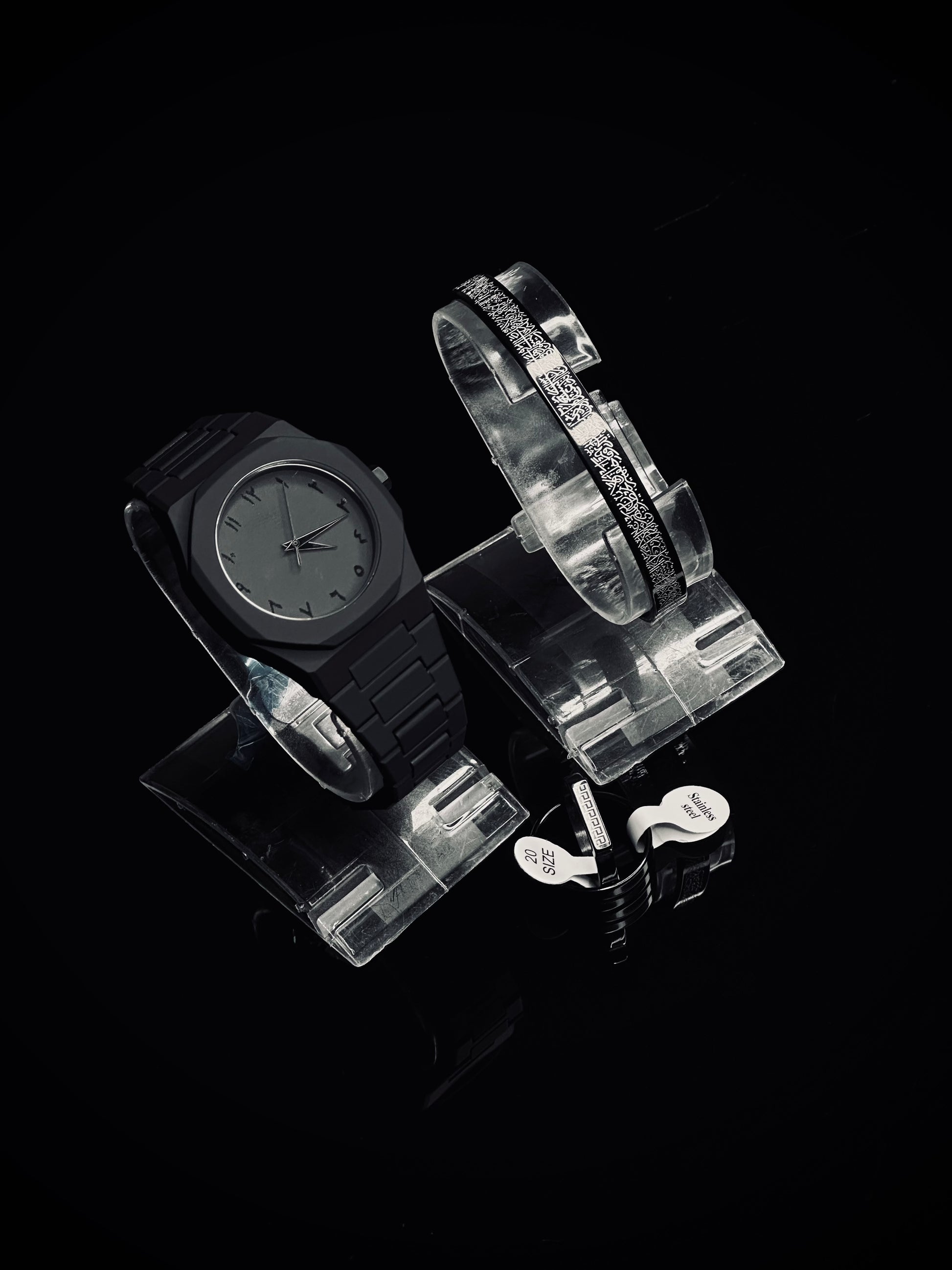 - 1x Ayat-ul-Kursi Bracelet – Made from heavy-weight stainless steel, engraved with the powerful verse of protection. A spiritual shield and style statement combined in one timeless piece.
