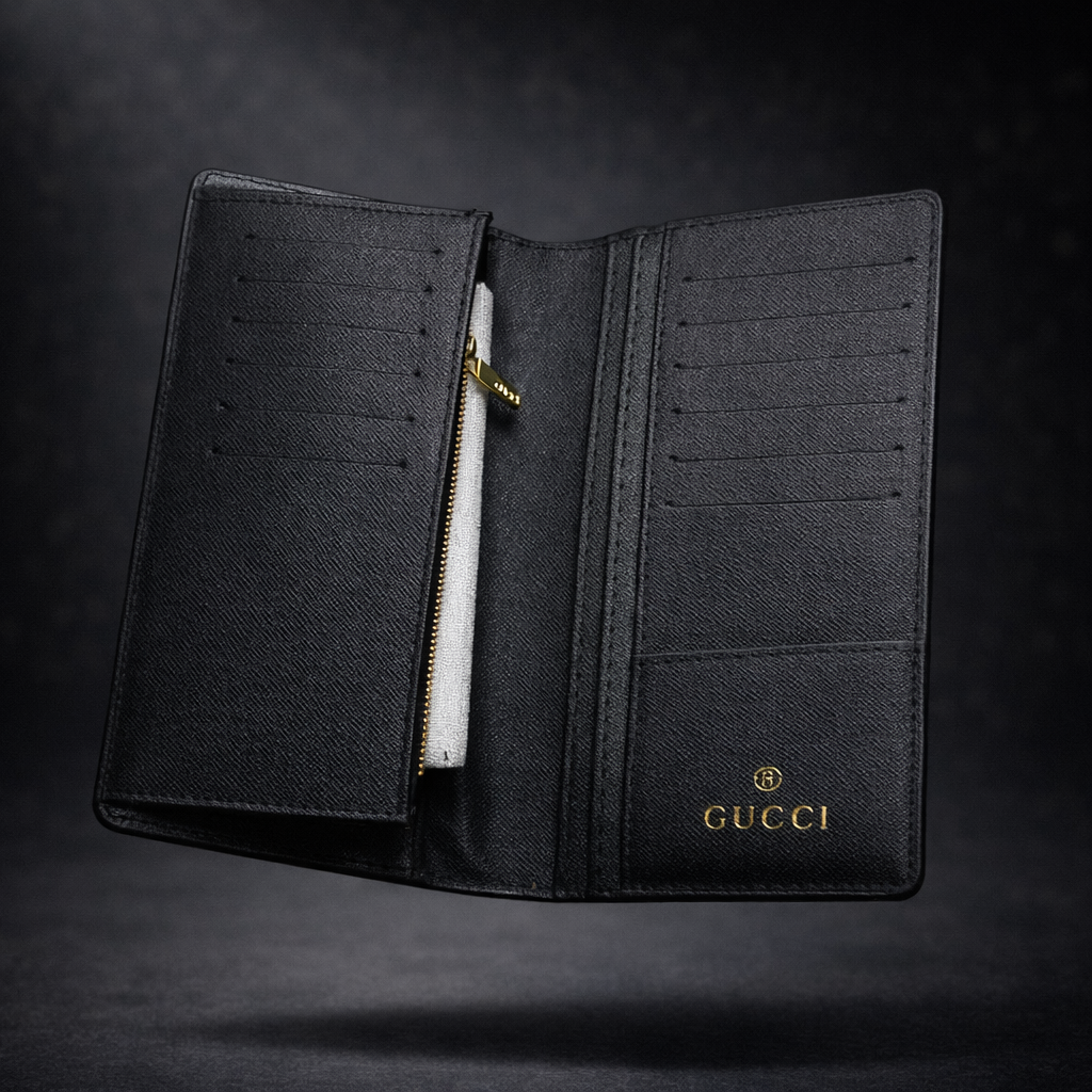 Experience refined elegance with this Gucci Leather Long Wallet, crafted for those who value luxury, style, and premium craftsmanship. Made from high-quality genuine leather, it features a rich texture, clean finishing, and precise stitching that reflects a classy, high-end look.