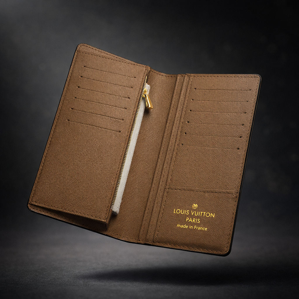 Experience timeless luxury with this LV Leather Long Wallet, crafted for those who appreciate premium quality and elegant design. Made from high-quality genuine leather, this wallet features a refined texture, precise stitching, and a sleek long silhouette that speaks class.
