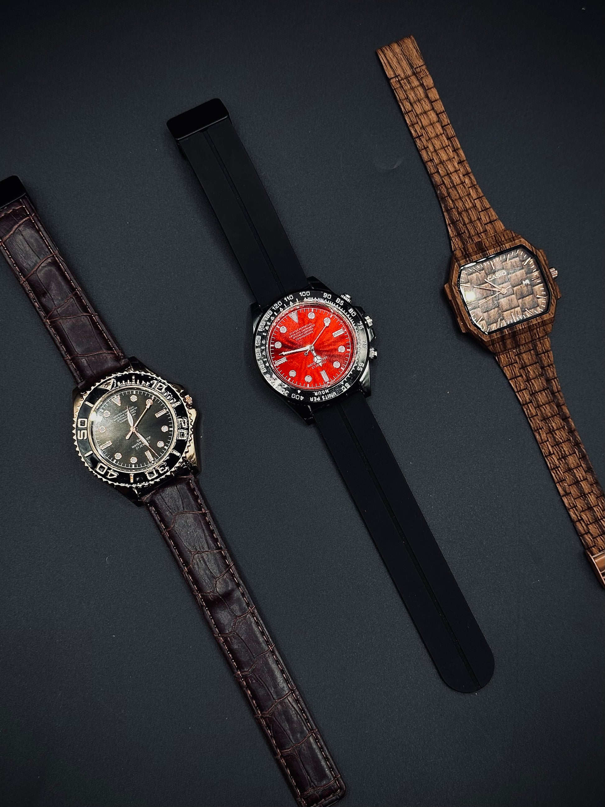 ✔ Casio Wood Watch (First Copy) – A stylish and unique timepiece with a wooden aesthetic.