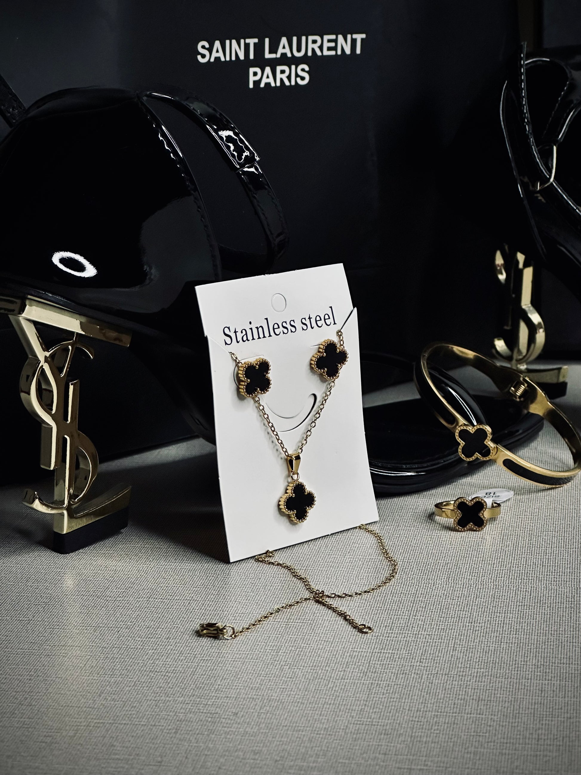 💎 Complete Alhambra Jewelry Set – Includes matching earrings, locket, bracelet, and ring, designed for timeless sophistication and everyday glamour.